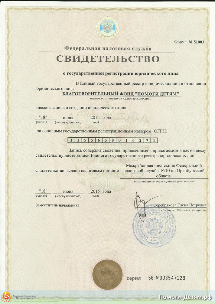 в апреле 2015 на общем собрании были приняты основные организационные решения: о создании фонда, утверждении устава, директора. В июне 2015 года мы получили свидетельство о регистрации некоммерческой организации.