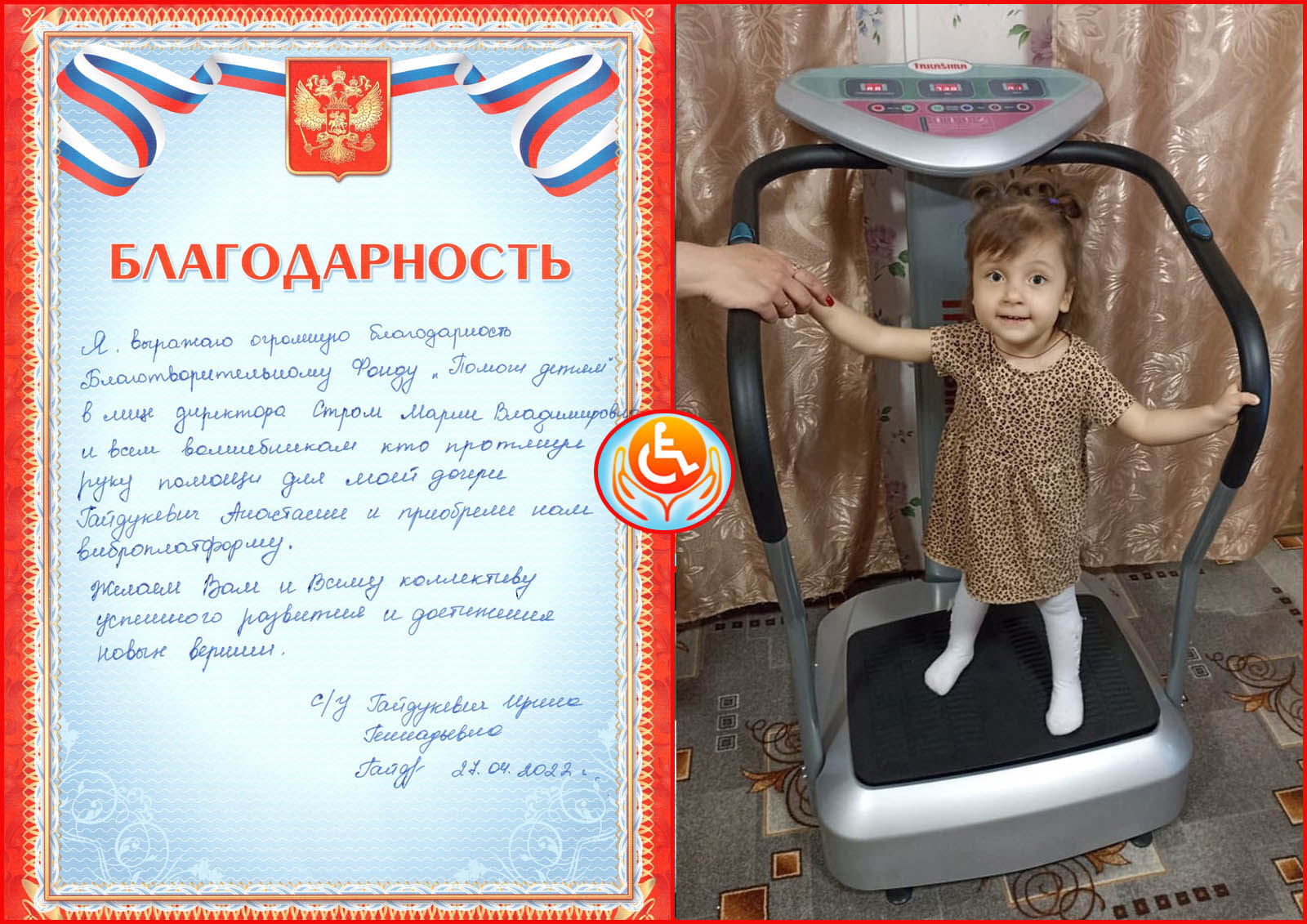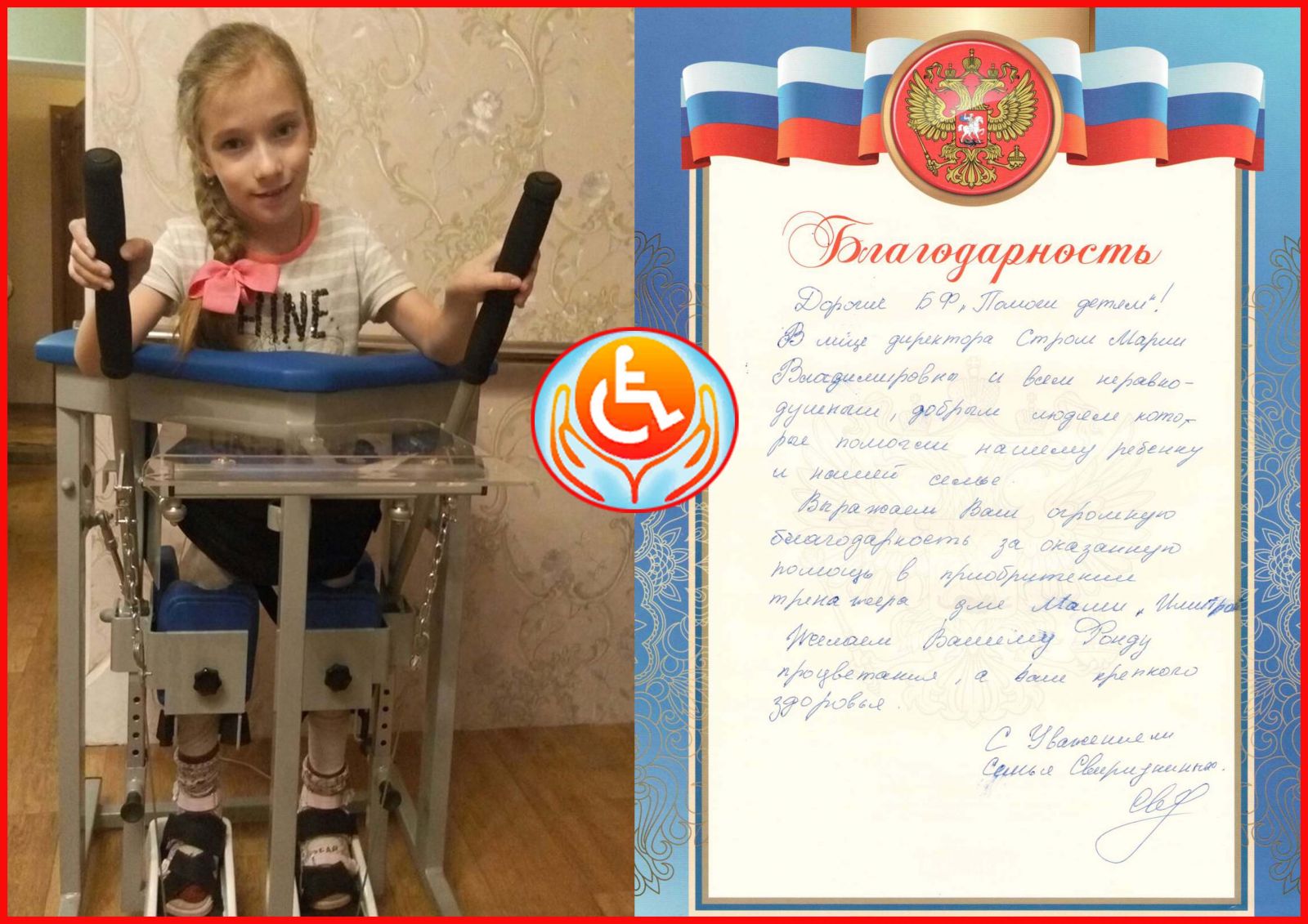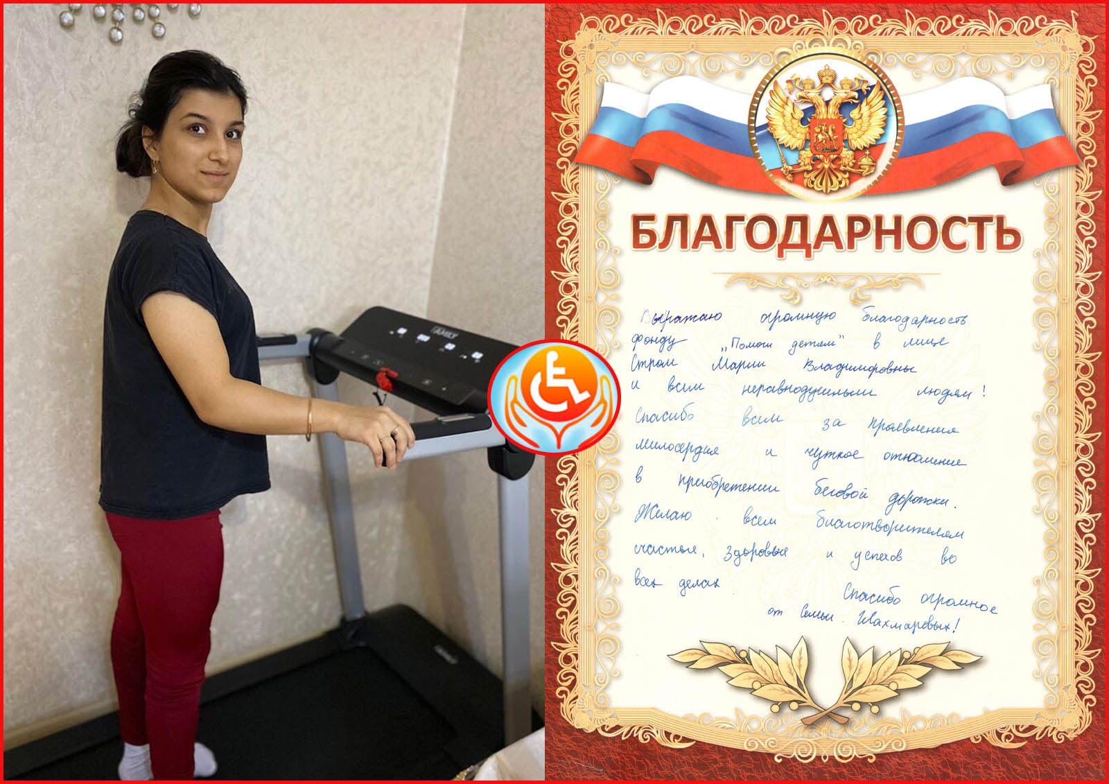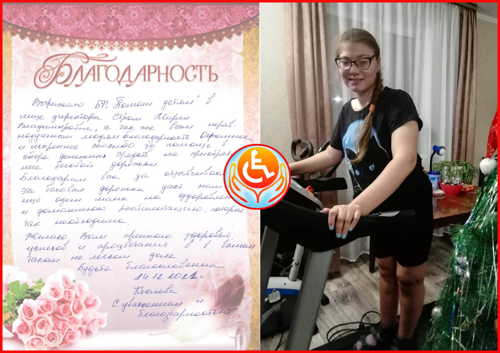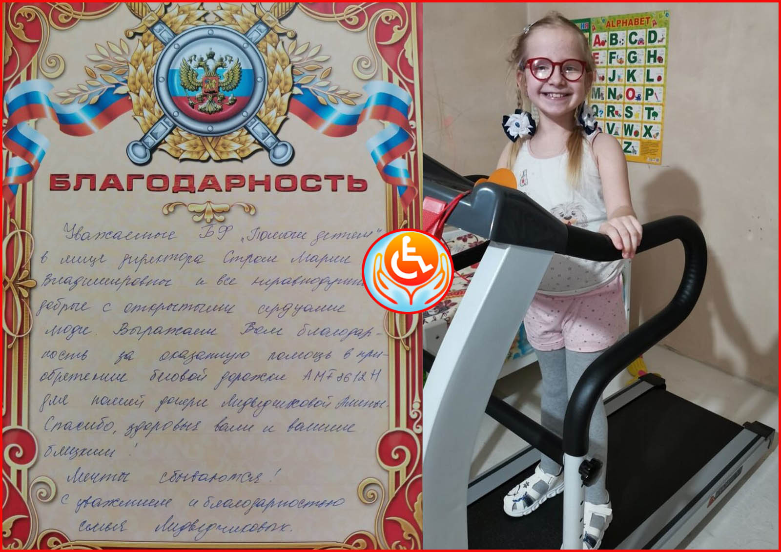 БФ "Помоги Детям" приобрел тренажер для ходьбы "Пароподиум" для Сусаевой Марии из города Оренбурга