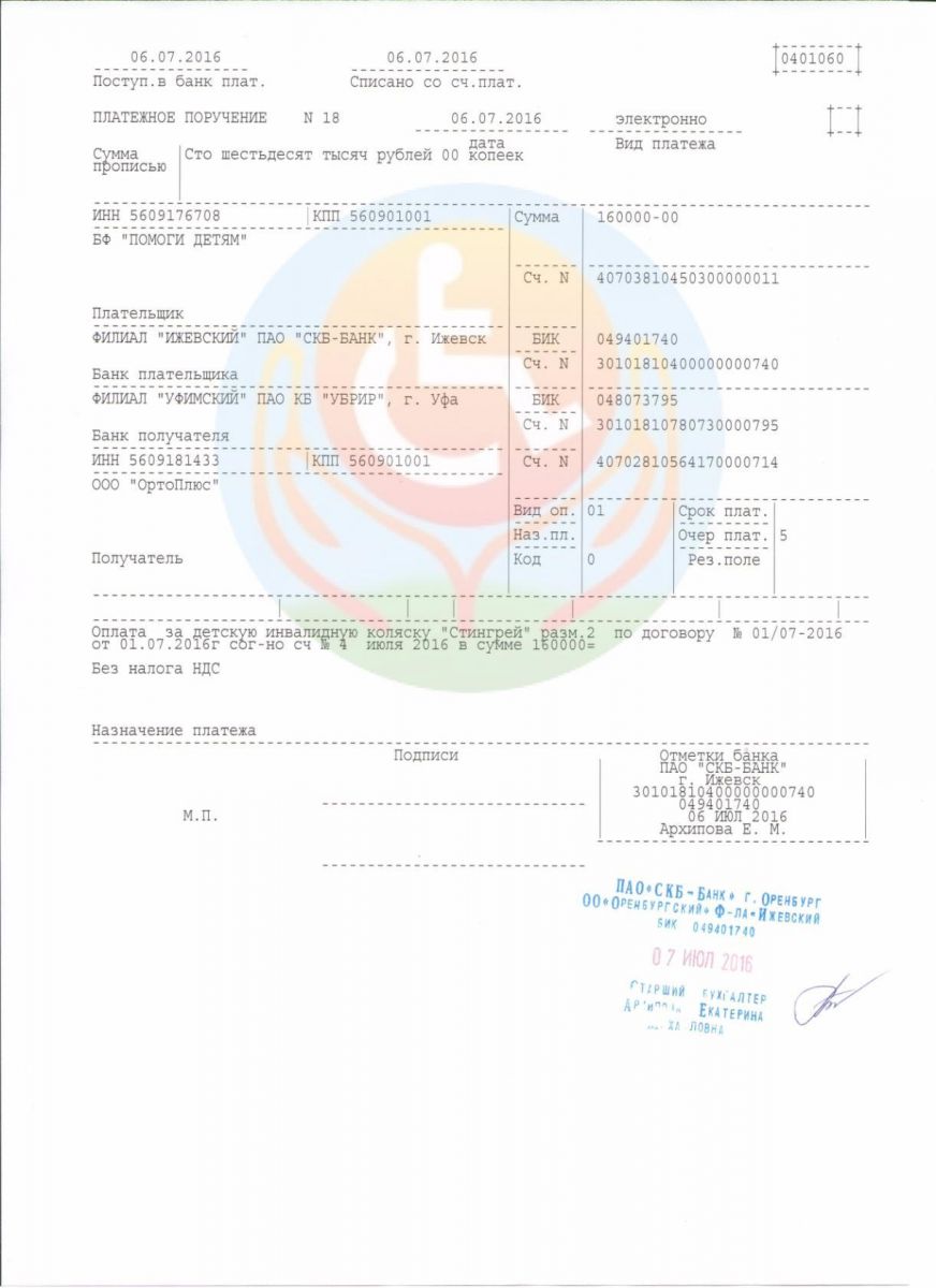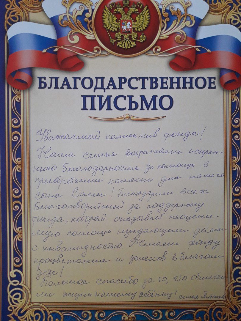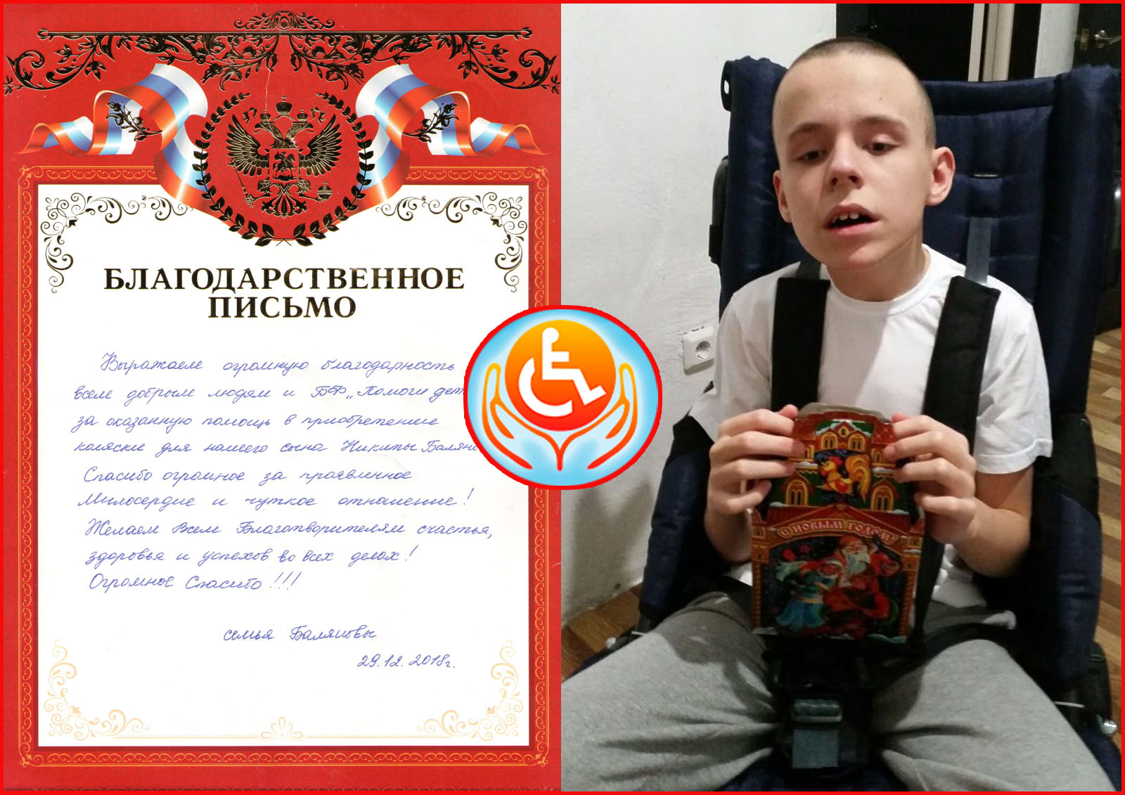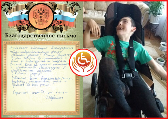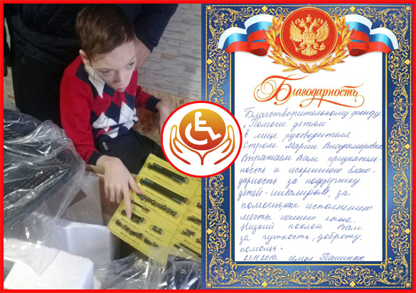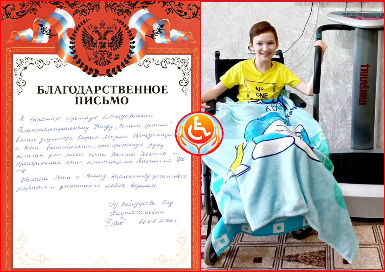 В офис нашего фонда пришел «тайный благотворитель» и пожертвовал необходимую сумму на приобретение тренажера "Акробат " для Белицкого Тимофея из города Оренбурга. Великая благодарность Ему за помощь и поддержку, за веру в чудо!