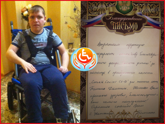 Горбачеву Саше, самому взрослому из наших подопечных куплена и вручена инвалидная кресло-коляска с электроприводом "АRMED" стоимостью 91 000 рублей!!!! Мы просто уверены, что благодаря Вам, наши отзывчивые Волшебники, жизнь Саши и Аллы Семеновны(его бабушки) станет намного проще и комфортнее!!! От всего сердца благодарим всех Вас, наши Друзья , за неимоверную поддержку и помощь!! Вы-самые лучшие!!!! Спасибо, что вы с нами, что помогаете помогать!!! Надеемся, что все вместе мы сможем помочь детям-инвалидам обрести столь долгожданное здоровье!! Каждый раз в такие моменты ком к горлу подкатывает и дыхание перехватывает, слова благодарности роем кружатся в голове!!! Вы просто удивительные, ведь каждый раз Вы дарите детям надежду на чудо!!!! Еще раз спасибо всем за бесконечную доброту!!!! А мы продолжаем помогать!!! Вы с нами?