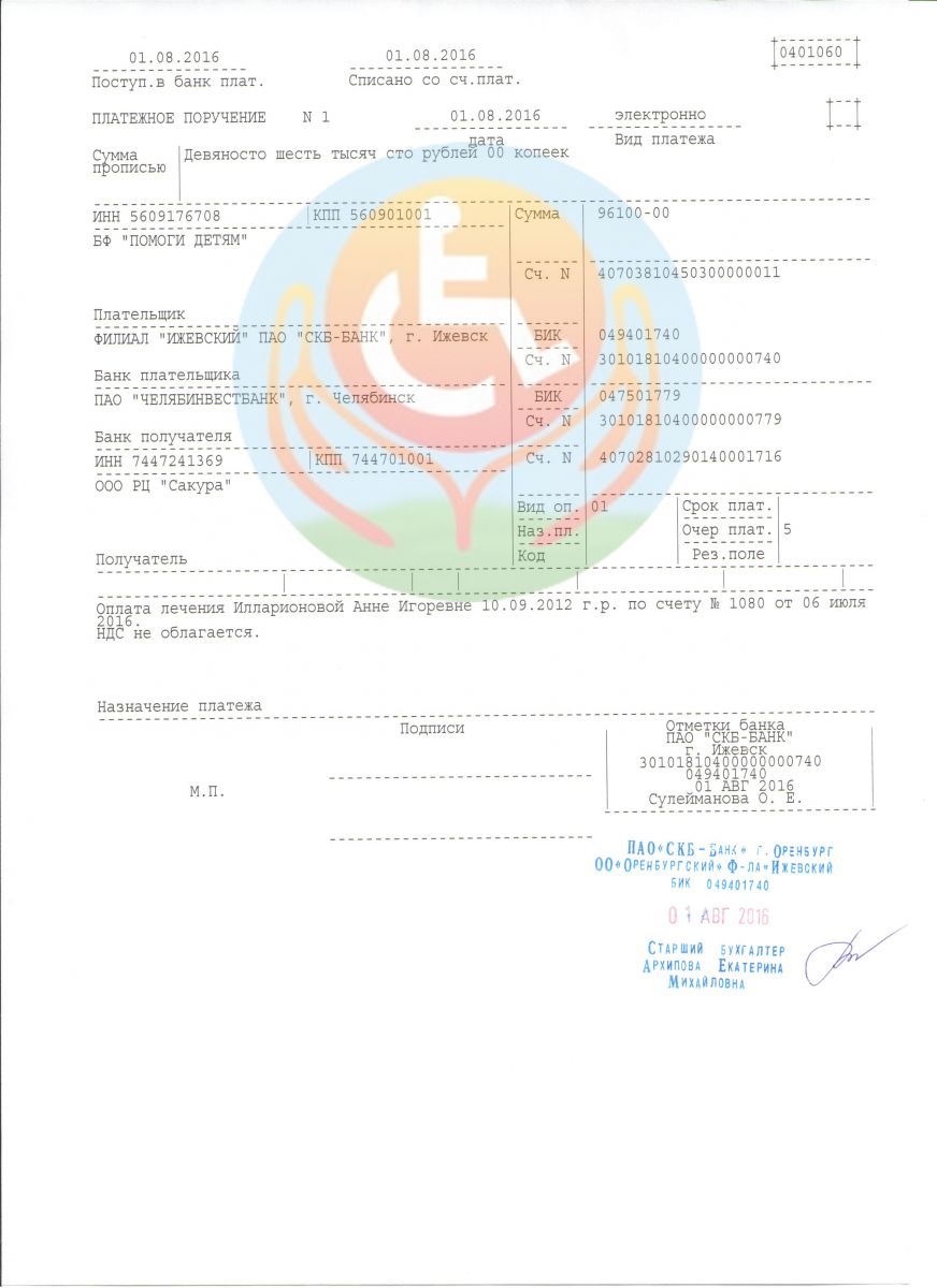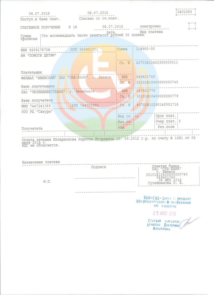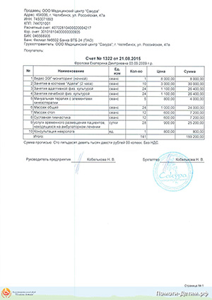 Оплата реабилитации в МЦ "САКУРА" для Илларионовых