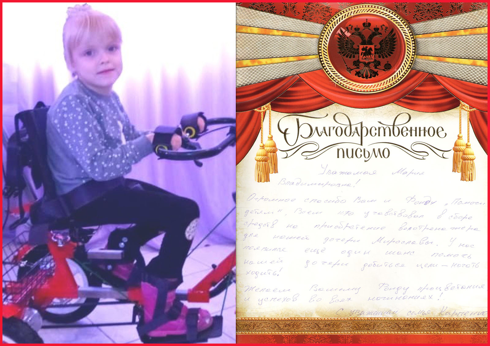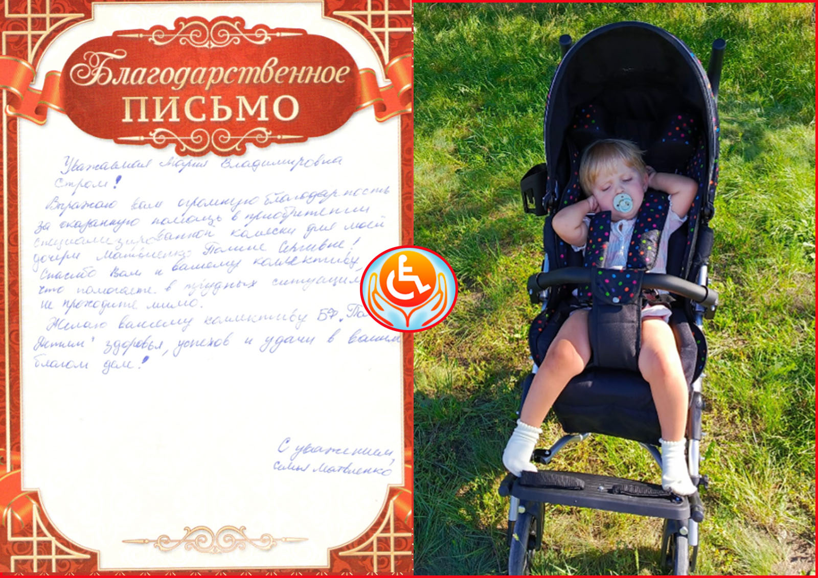 Общими усилиями для Лены собрано 160 000 рублей, на которые куплена детская инвалидная коляска "СТИНГРЭЙ" ! Это очень долгожданный и волнительный день для каждого родителя, который ждет, что помогут именно его ребенку. Хотим поблагодарить всех, кто помогает нашим подопечным: кто материально, кто добрым словом, кто советом, кто молитвой,кто репостом! СПАСИБО ВАМ, дорогие наши помощники, за каждый ваш вклад, за любое участие в жизни Фонда и просто за то, что вы рядом.