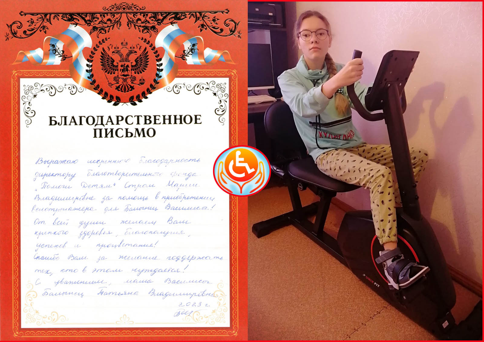 Для Коршиковой Маши куплен велотренажер «Ангел-Соло 3» / Март 2017 г.