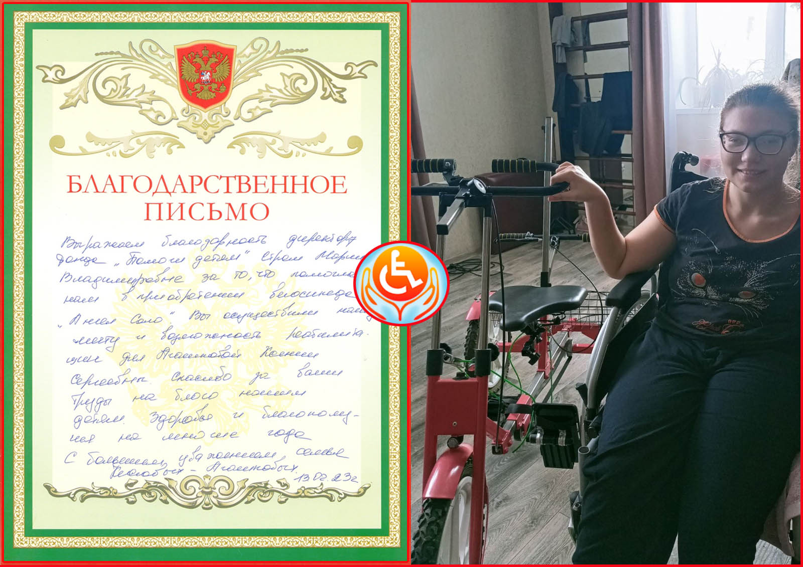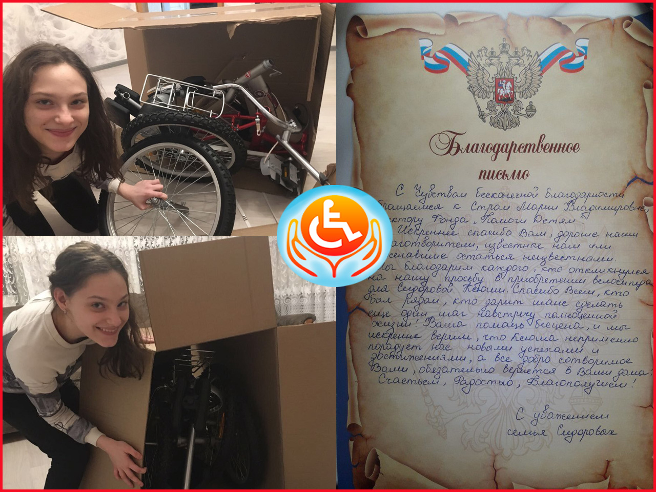 Для Сидоровой Оксаны ( г.Оренбург) был приобретен специализированный велосипед для детей с ДЦП "Велолидер" / Декабрь 2017 г.