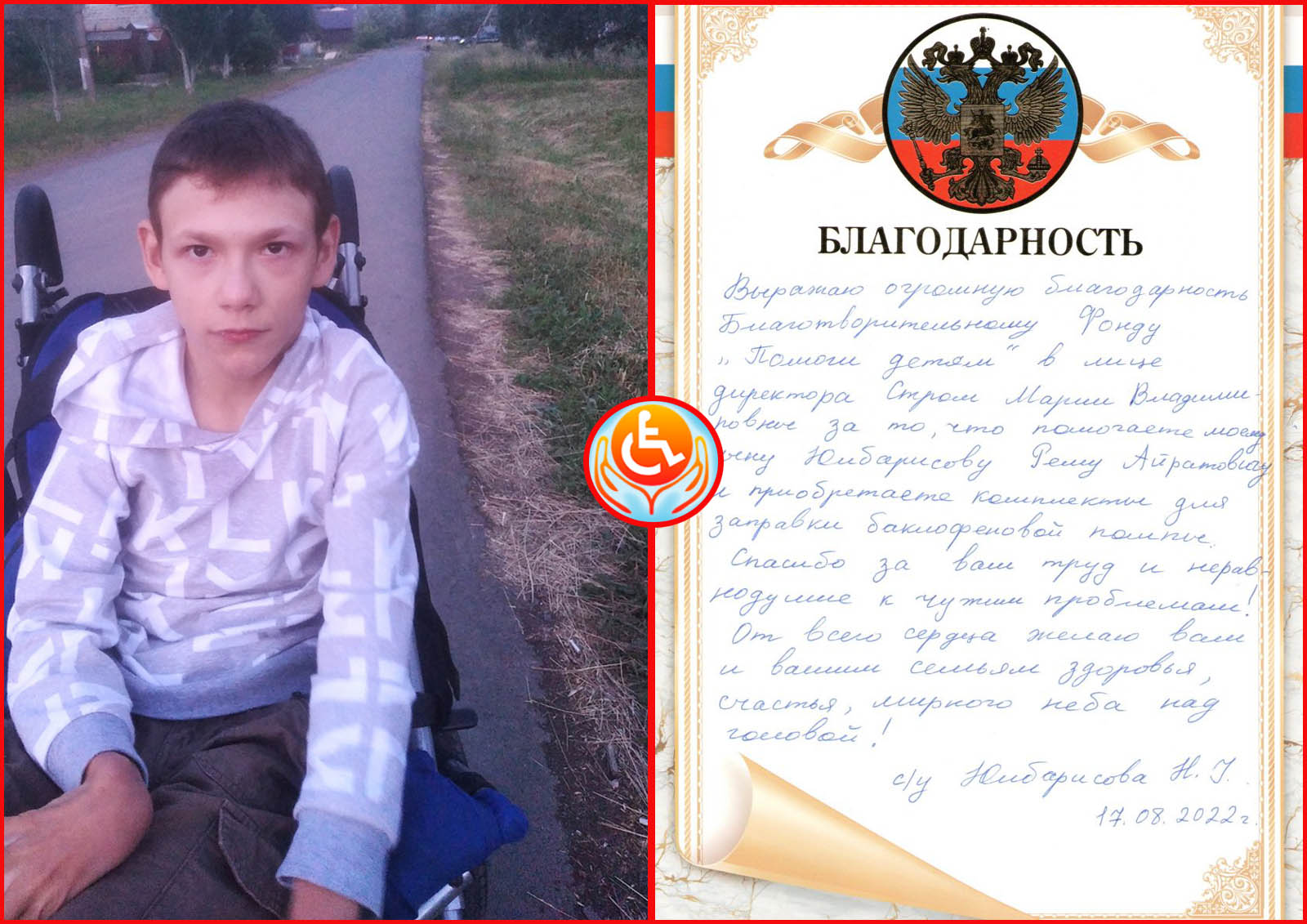 Мальцев Дмитрий 19 лет Диагноз: ДЦП г. Оренбург сумма 26820 набор для заправки инфузионной системы «Refill Kit»
