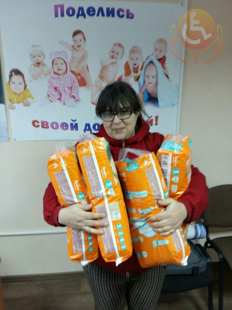 Пожертвование в виде детских памперсов для семьи Алиевых / Декабрь 2016 г.