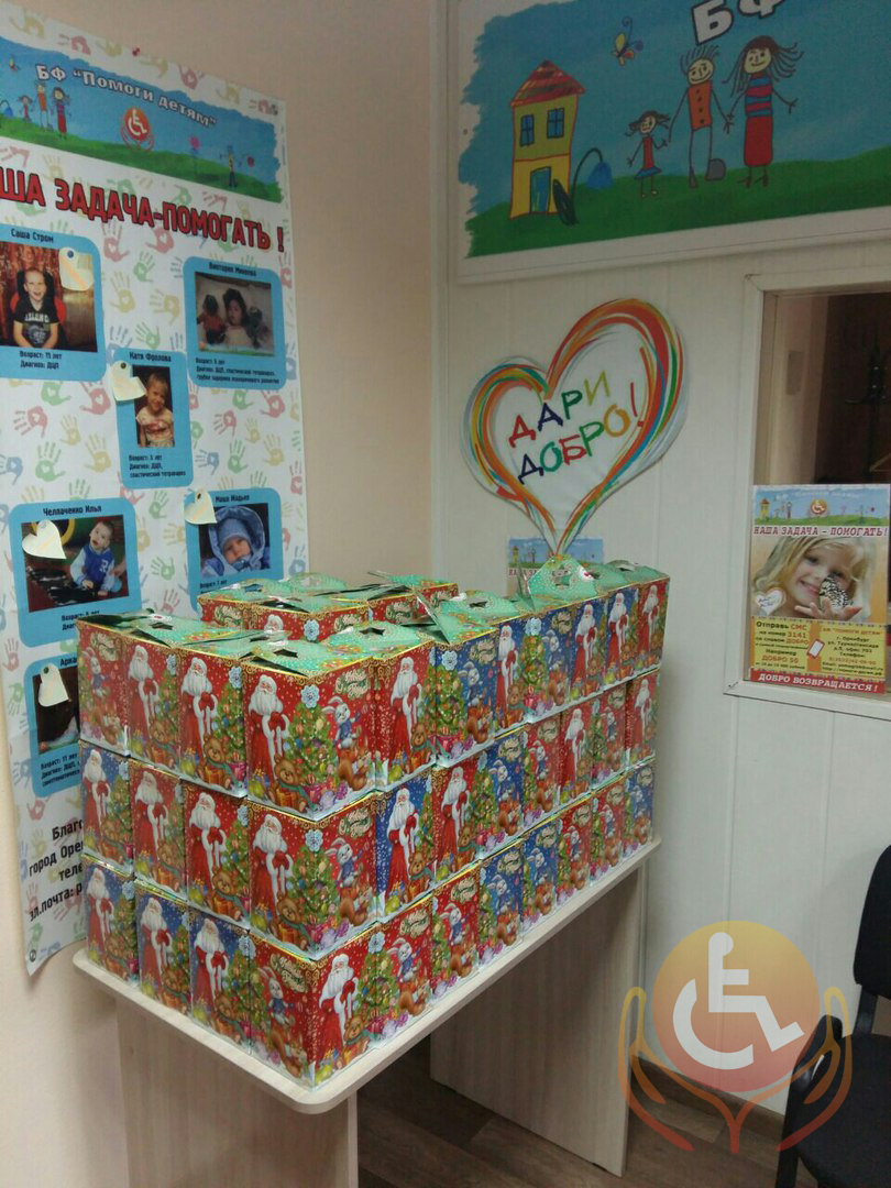 Благотворительный Фонд "ПОМОГИ ДЕТЯМ" предоставил новогодние подарки управлению по социальной политике администрации г. Оренбурга, которые они вручили спинально больным детям г. Оренбурга на новогодние праздники.