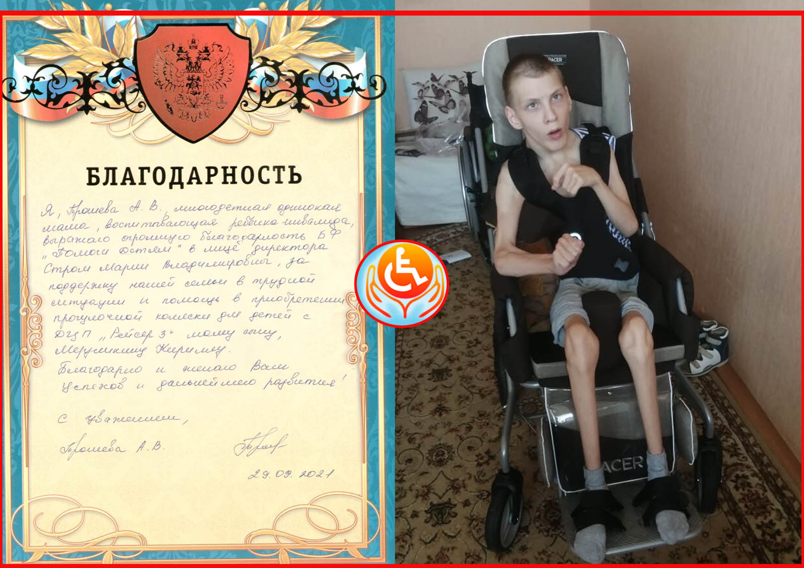Благодаря Вашей помощи и поддержке, наши добрые Друзья, мы закрыли сбор на Панина Аркаши! Аркаше куплена и доставлена очень удобная и комфортная детская инвалидная коляска "СТИНГРЕЙ" ! Спасибо всем! ВМЕСТЕ МЫ МОЖЕМ ВСЕ ! Мы спешим и дальше делать добро, присоединяйтесь! Добро Возвращается!!